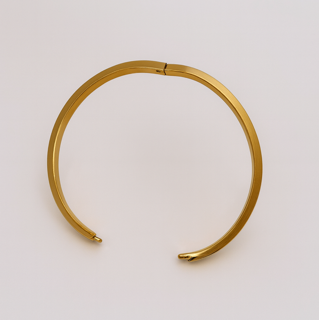 Jonc fin en acier inoxydable doré, élégant et minimaliste, pensé pour être gravé avec un prénom, une date ou un message symbolique. Sa forme rigide et sa fermeture discrète épousent délicatement le poignet pour un rendu chic au quotidien comme pour les grandes occasions. Une pièce intemporelle à personnaliser pour offrir (ou s’offrir) un bijou vraiment unique.